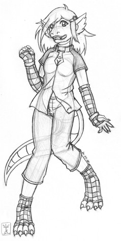 Looks awesome The checkered socks and (armsocks?) really give it a unique character! The only nitpicky thing perhaps is that it's kinda hard to tell if it's a girl. I think you should accent the breasts just a little bit. In the uncoloured version I personally thoughtt it was a boy ^^'