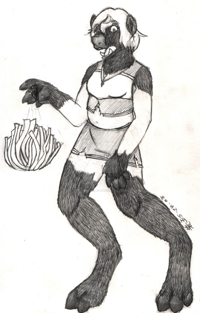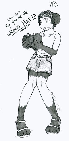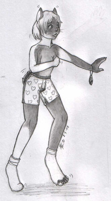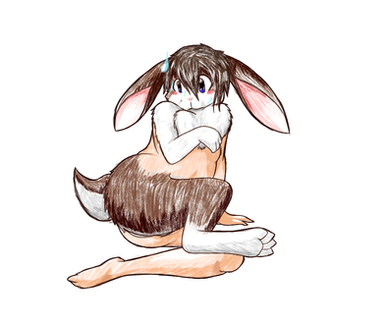 This is cute, I love how the pose/body shape is very rabbit-esque. The polka-dots on her shirt are nice, too, it adds a good detail