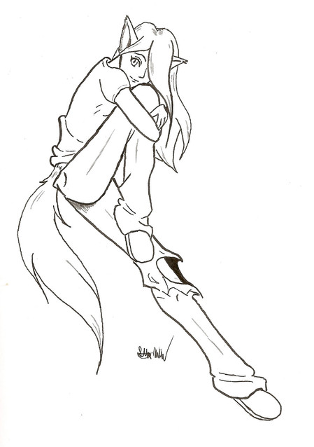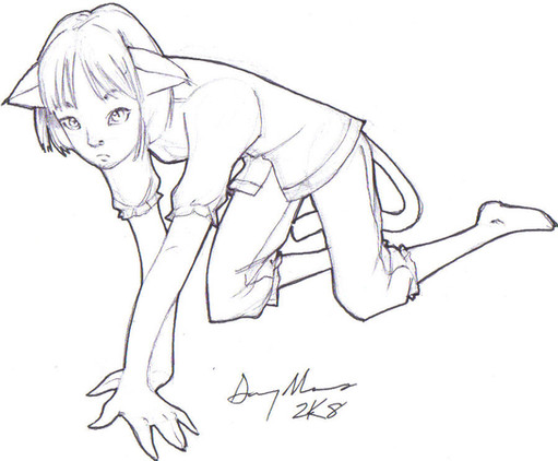 Girl to Kangaroo. What kind you ask? Well...For once I don't know. I can say this though- Not a tree kangaroo! I should draw one of those though. Tree kangaroos are cool-lookin'.I've attempted a coloured version of this, not sure if it will get done though. I started off with a WHOLE lot of purple...