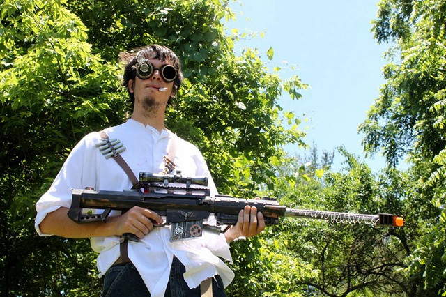 Very nice gun design. Everything seems to work pretty well together in the picture, tooβthe clothes and goggles as well.