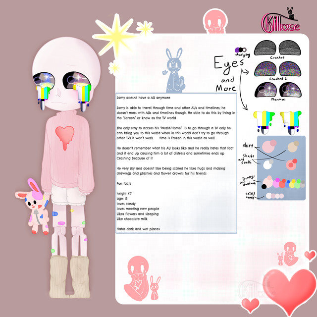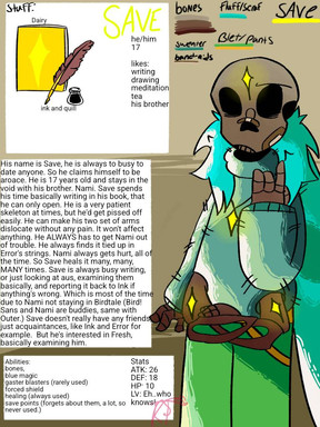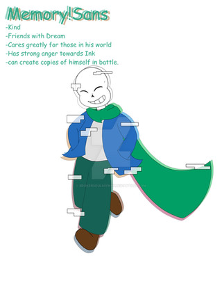 They lie sometimes, But it's mostly only to protect others/ themselves, or bring happiness! They are short, but they are taller than Ink by a few inches. They can turn back into their 2D form, but they still will be not able to use magic. They mostly just hide from others in their 2D form by turning to the side so they disappear like a sheet of paper does. They are very shy and sweet! They refer to Ink as "Inky", they refer Nightmare to "Nighty", they call Luck "Lucky", they call Unluck "UL", and they call Cutout "Sis"