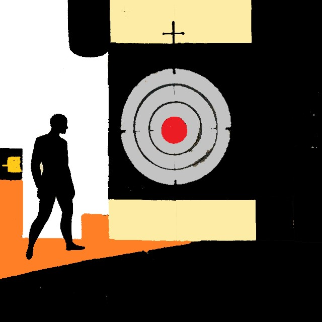 i really the perspective with the 'one way' text and the face-less/hand-less dude (foreground)
