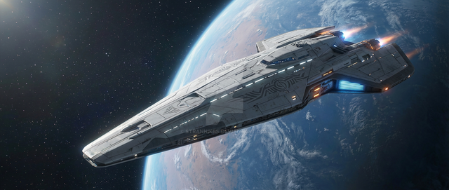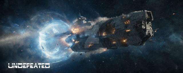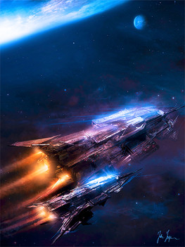 I think I prefer the one on the right. The darker background makes the craft show up better. Also, I think the ine of acceleration of the crafts is too parallel to the line in the background on the left.