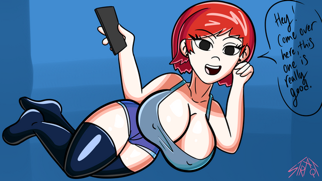#ass #bigass #bigboobs #bigbreasts #bigtits #blushing #booty #butt #cleavage #cute #meme #phone #redhead #sexy #shorthair #shortshorts #thighhighs #denimshorts