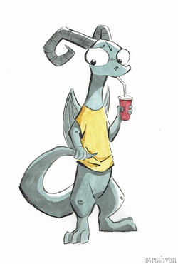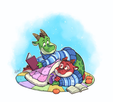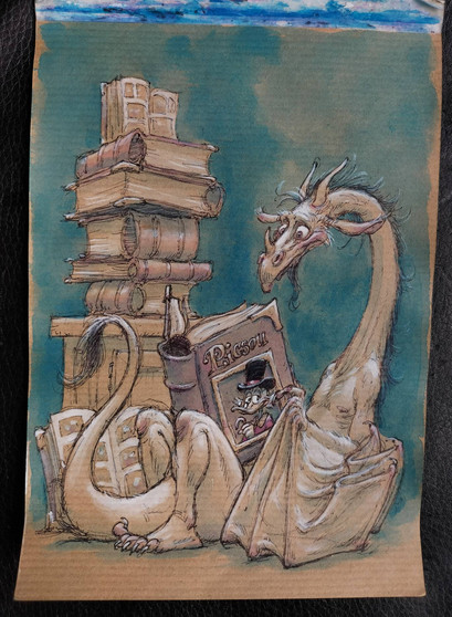 #cartoon #cute #dragonn #furry #junebug #reading #reptile #scalie #inkdrawing #traditionalart #watercolor