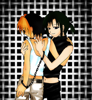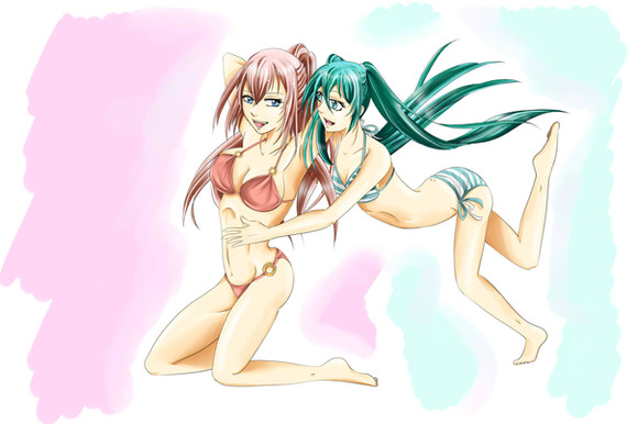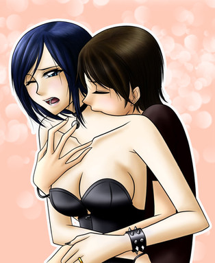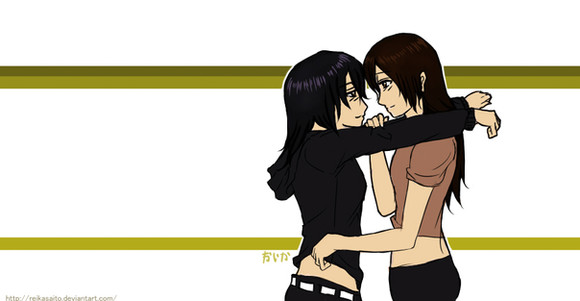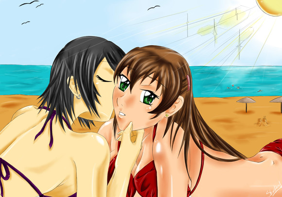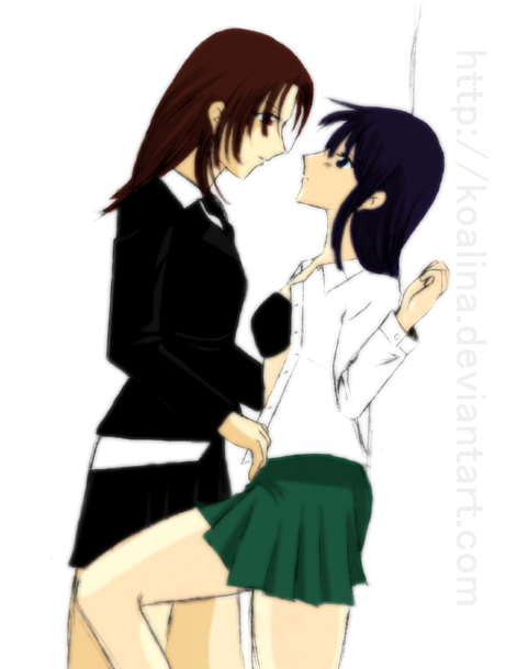 very sexy and cute! i really like the tie in the mouth, because it's different; usually, there's panties or fingers in the mouth, but this is more interesting and just as hot. i don't think the short-haired girl's left breast would stick that far forward, but that's just a minor point. they both have pretty, passionate eyes, and i like the poses a lot. nice work.