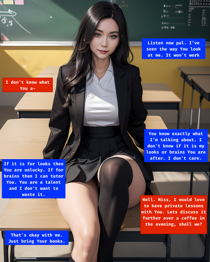 #ai #mindcontrol #schooluniform #webcomic #aiart #celebrityfake #stablediffusion #leatherjacket #leatherskirt #belledelphine