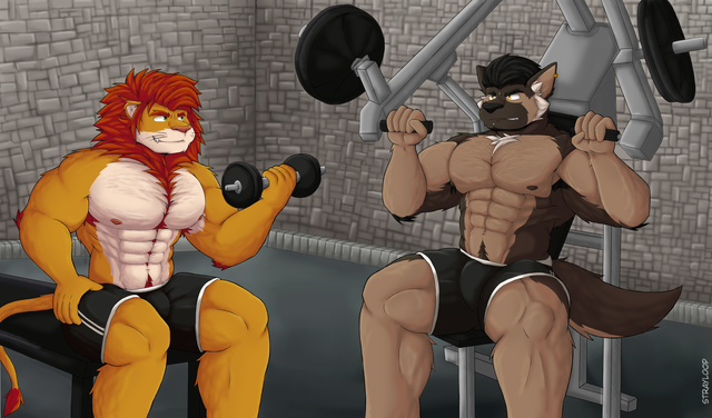 #commission #furry #anthropomorphic #box #boxing #exercise #furryfandom #gloves #gym #lion #wolf #gymclothes #strayloop