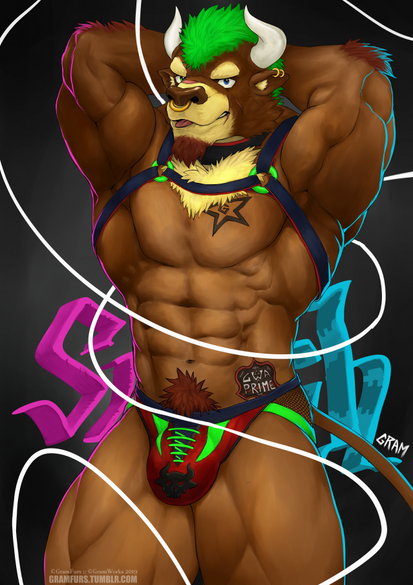 #belly #bull #digital #furry #furryart #furryfandom #male #muscle #art #strayloop #flexingmuscles