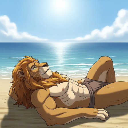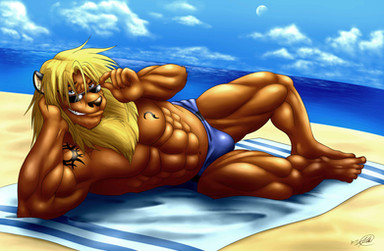#anatomy #bara #beach #bodyinflation #commission #furry #furryart #glasses #lion #male #muscle #summer #sun #furrycharacter #strayloop