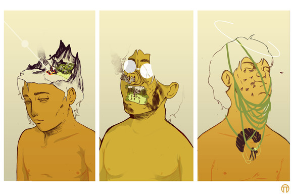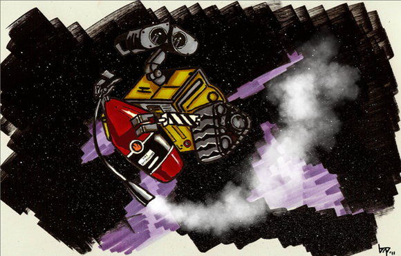 This morning the amazing Tomar Hanuka has graced us with his presence before he takes his leave back to Israel.The entire Illustration department has been in an uproar over this event, buzzing with the noise of creativity and admiration. Before he arrived it was required for all 110 illustration students to do an Individual movie poster involving an actual movie that is set in a futuristic environment (Alien, Wall-E, 1984, The 5th Element), and render this idea using only Bronze, Silver and Gold.