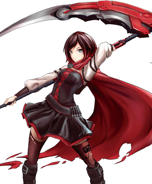 Bio: Ruby Rose was the youngest student to ever enter Beacon Academy, soon finding herself leading the team of the same name, Ruby was destined for greatness. When her school was attacked by Grimm she fought hard to protect it, when Cinder tricked Jaune Arc into killing Pyrrha Nikos right in front of her, she awakened a power that was lying dormant in her for years: The Silver Eyes. Waking up a week after the Fall OF Beacon, Ruby discovered that her team was forcefully split up and went with the remainder of Team JNPR to Minstral forming Team RNJR. During the Battle Of Haven, Ruby was speared three times in the gut and was temporally killed before Jaune revived her. During the Fall Of Atlas, Ruby ran into her old foe Neo, after a fierce 2v1 battle Ruby had her eye taken out, aura drained, and was thrown off of Atlas, Tom, Jerry, Kirby, and Silver The Hedgehog saved her by grabbing her hood and grabbing Superman's cape. She spent the next two weeks unconscious in a hospital bed. After the fall, Ruby said she couldn't go on anymore and decided to go home, only to pass out from the cold, thankfully her uncle Qrow found her just in time before she froze to death. During that Battle Of Vacuo, Ruby held back Cinder while Gon Freecss and Killua Zoldyck used the Potara Earings to fuse into Killuon. She was one of the heroes that cheered Mario and Sonic on when they tag-teamed Salem. After this Ruby went home to find her older half sister Yang had left to go to Gmod City. 5 years later and after Cinder's death at the hands of the Ghost Rider, Ruby reunited with her sister and her teammates with shortly after confessing her feelings towards her partner: Weiss Schnee. Her weapon is a scythe called Crescent Rose. Her semblance allows her to increase her speed. Her special power is her Silver Eyes or Eye after Atlas. With these she can immobilize any Grimm. After training for a year in the Hyperbolic Time Chamber. Ruby can send the power into any part of her body giving her a boost, she later learned how to spread it to her entire body.