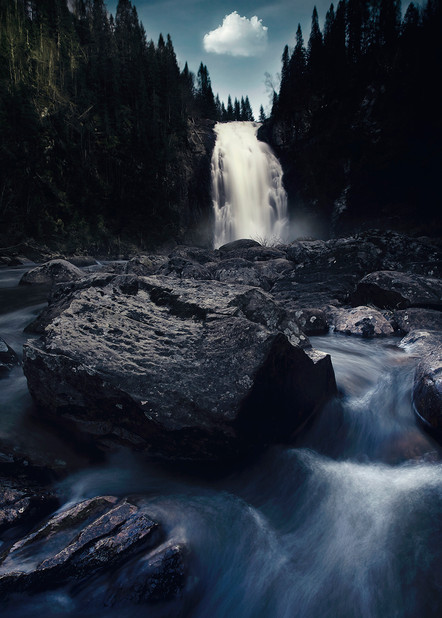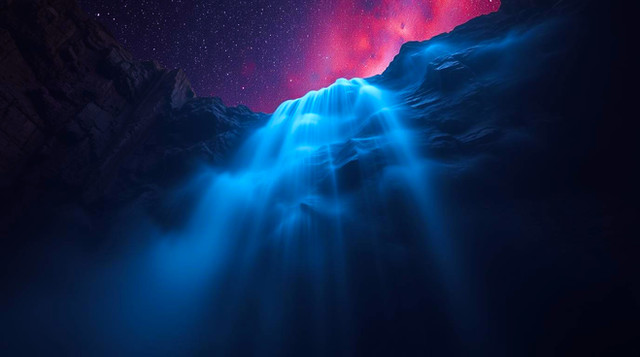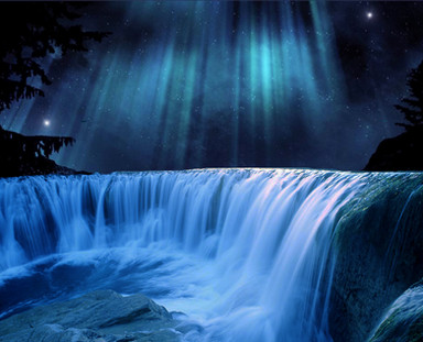 Of the many images of waterfalls I've seen recently, this is the one that stands out.Β The falling water is perfectly silky smooth, the stars fill the sky, and the dark is totally unexpected.Β Well done!