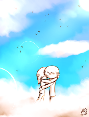 They're so cute and blob-y. I love the soft tones that you used, really goes with the hug. I like it! ^^b