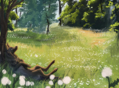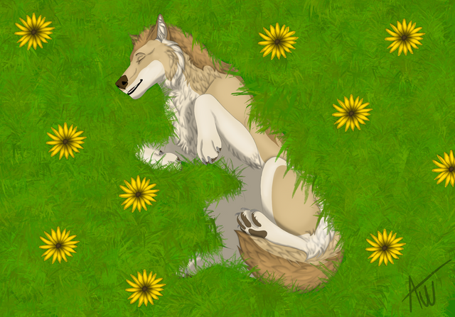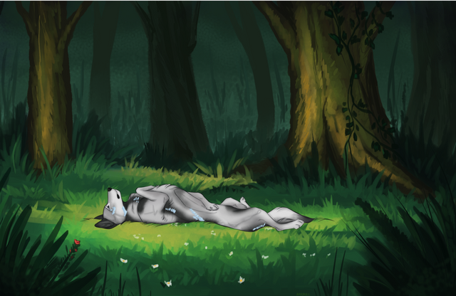 #canine #flowers #forest #grass #nature #sleeping #ych #finishedcommission #ychcommission