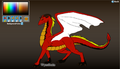 He is a baby fire dragon so he has yet to get a flame on his tail and he can breath fire but its very weak since he's so young. He is still learning how to fly but he can glide over the ground for a minute before having to land