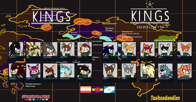 Here is all the cast members of the KINGS continuity in the Ace Combat 7 portraits, which features 's OCs Nat the Hedgehog and Asher the Hedgehog. The continuity is a mixture, base on NatashaMX27 original Asher storyline and the video game Project Wingman.Sonic the Hedgehog: (c) SEGA.