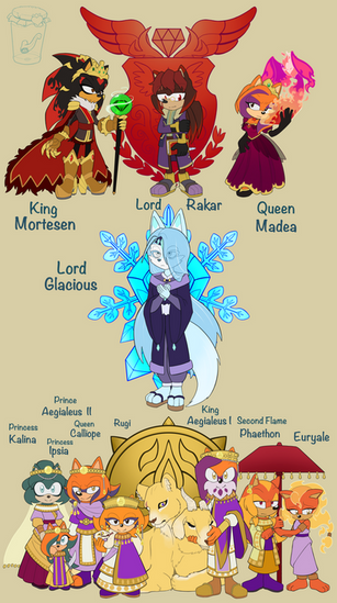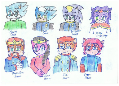 Here is the full main cast for the upcoming fanfic KINGS, featuring my friend OCs. The story is set in a alternative setting of the planet Mobius afflicted by a worldwide volcanic cataclysm centuries ago that uncovered a valuable geothermal energy resource called "cordium" but also created multiple exclusion zones across the planet. The story is base on the video game Project Wingman.Sonic the Hedgehog: (c) SEGA.