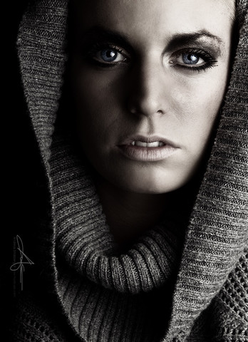 When you look to this picture, the first thing that take your attention is the blue deep eyes, they are gorgerous, his expression is very intense, you just feel that she is looking to you. Then, you notice the other parts of the picture, perfect colors, a harmony, nothing perturbant.