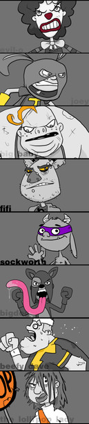 Fun-looking I like the poses, reminds me how so many people tilt their faces on myspace(no offense) Nice work ^.^