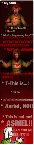 Und der Detail..... Ich bin bei sowas sehr schlecht.^^° Vieleicht Asriel der leuchtet, so als Zeichen das er Chara helfen kann?^^°