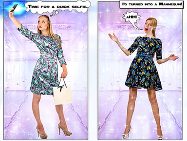 Adorable forced-shocked-surprised bimbo mannequinfreeze. Cute facial expression!