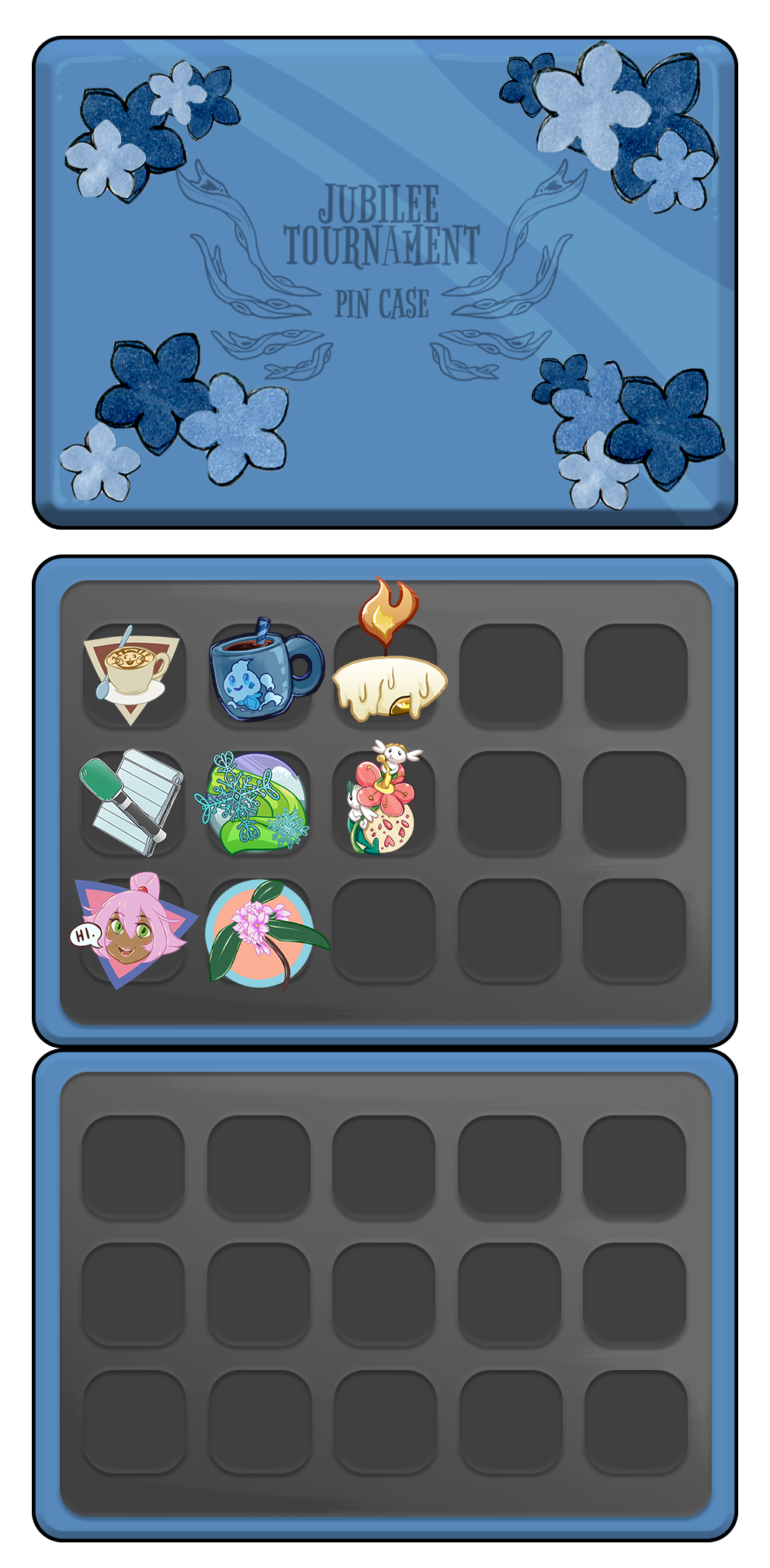 Metagross-blue box with small flower stickers.