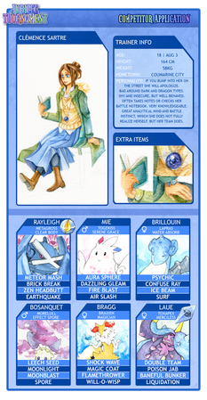 - accompanied by Bragg the Braixen (outside of the Pokeball, lighting the way) and Laue the Toxapex (in Pokeball, can be summoned for battle). The two don't get along well, so tensions possible