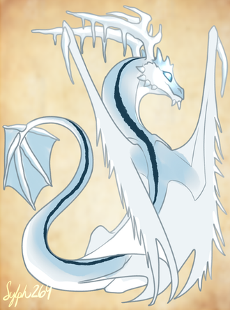Entry for this month!"These dragons a truly a sight to behold. As hatchlings, they are quite playful. They love to slide down snowy hills and hide within the snow to pounce onto other hatchlings and even any wizard or witch who unfortunately has walked past! As adults however, they were known to be a symbol of peaceful times. Some wizards and witches wrote poems about this dragon and how it is as beautiful as the moonlight glistening off the snow. A certain wizard was so inspired by its appearance that he even wrote a song called "Winter Dragon Wonderland" that is sung during the cold seasons in the vale!"