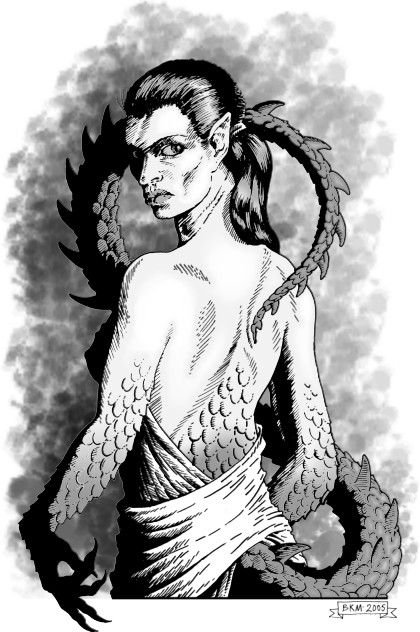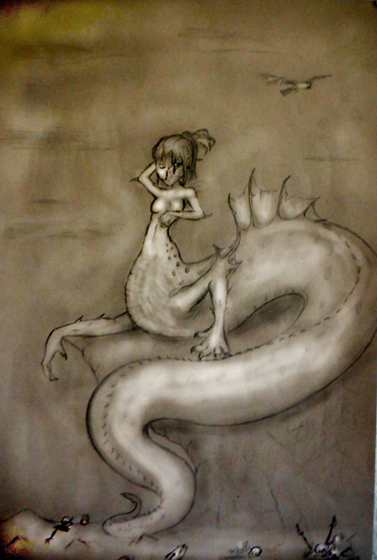D'aww. really cute, really nice colours, how you made scales and hair work together is cool. =]