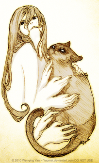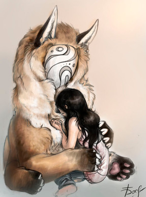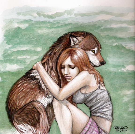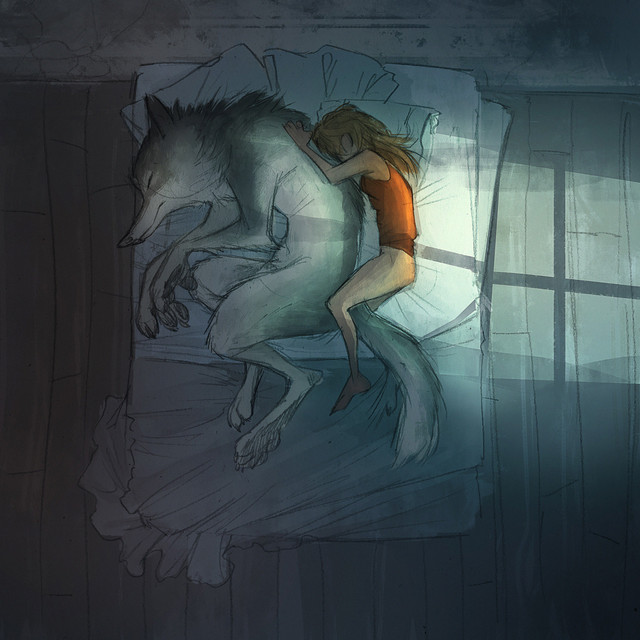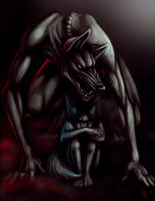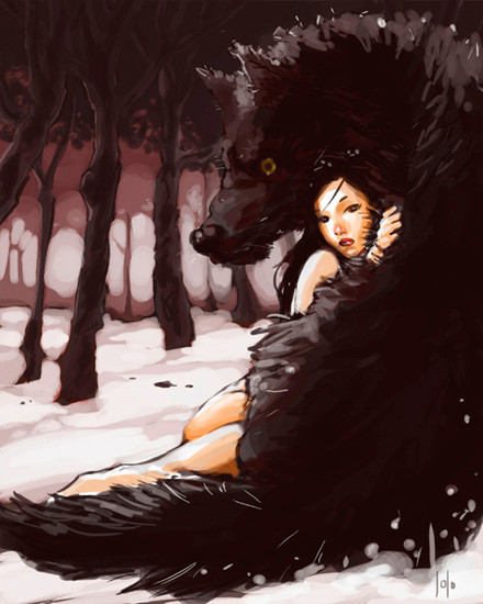 The fact that she has a face like a human and her other has a wolf's head entirely kinda disturbs me, but this pic still looks so great, and pulls off such a sweet mood. It's also very evident the amount of work that went into this piece, very good job