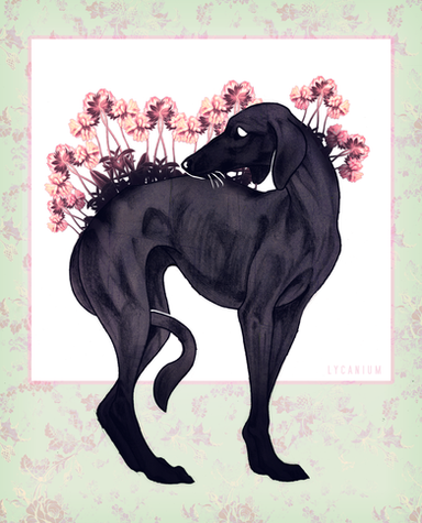 Dog, or death hound? It really doesn't seem to be appreciating the flowers, but it is super cute!