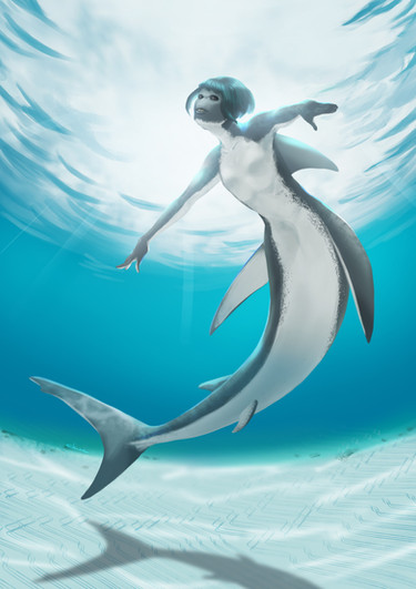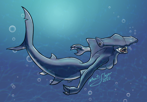 Oooh! What a beautiful hammermaid! <3 and I adore the soft silhouettes the fish and hammerheads.