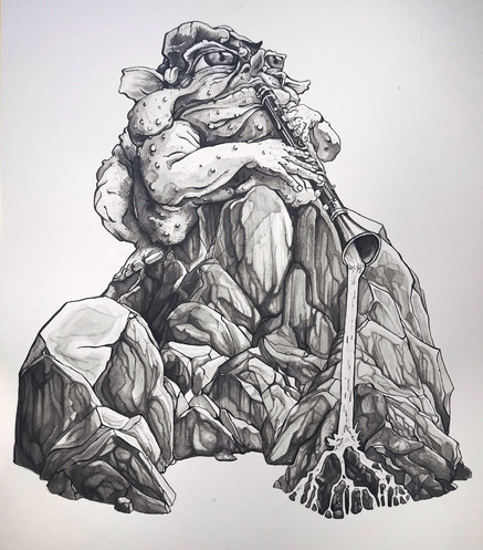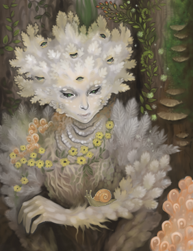 One of many lesser deities. Wise and benevolent. Accepts offerings of incense, fruit, and honey.Graphite and charcoal on paper.