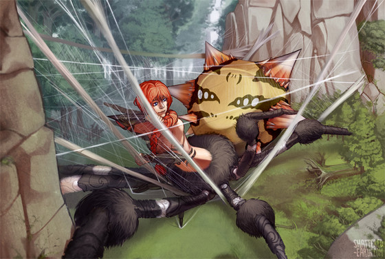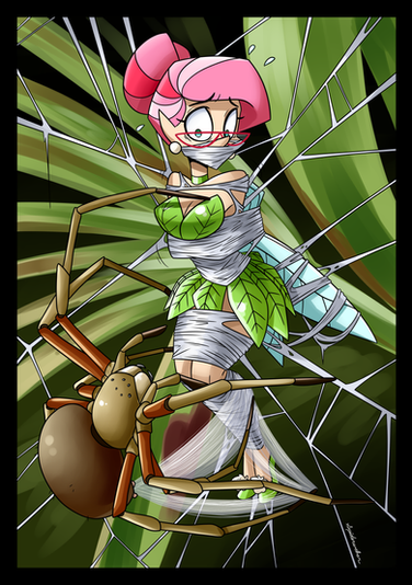 I love how dramatic the scene is, and the overall warm color palette of the piece even though Spidella is about to devour the poor bee girl!