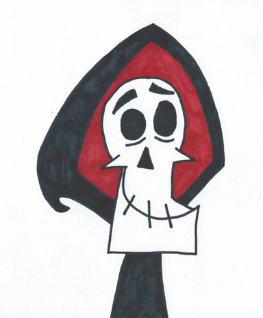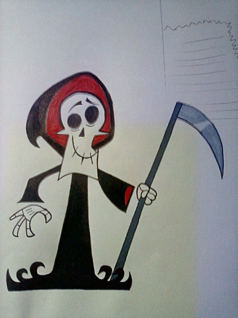 the grim reaper from 'Grim and Evil', back in the day when cartoon network was awesomepencil, colouring pencils and biro outline