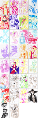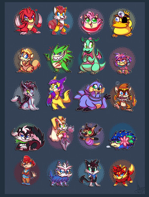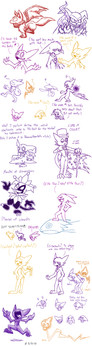 Here's a collection of marker stuff (and one sketch) most of it from the first half of 2014. Sonic designs, Sonic fan character designs, LOADS of floof ocs and floof designs, Pokemon, Neopets, a little portrait of Klonoa... and Strixic in a different form. He's the odd one out 'cos he ain't a floof :VI drew that Carox sketch on Christmas day last year lmao