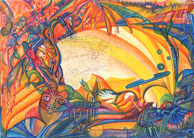 When ever I look at your work I simply cannot believe it is pencil. It is so fluent, it flowes from one shape to another from one colour to another. The amount of the detail is simply to say it obscene. I like how you have tried to paint your soul, actually all your peices are self exploration on the way, you leave your soul bare for the world to see. Since I am mathematician I will have to say that your work reminds me of fractals, random in nature, still beautiful, when you look at it whole you notice that there is a point, there is a greater creation.Well done (: