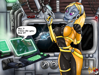 im not noticing much of a different apart form her breasts getting bigger and the belts but still very sexy and beautiful man yo udo an amazing job drawing Quarian women