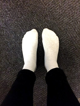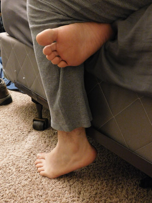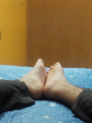 My tired feet hanging off the side of my bed.Related content