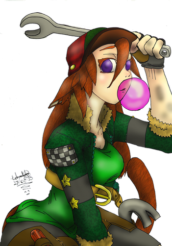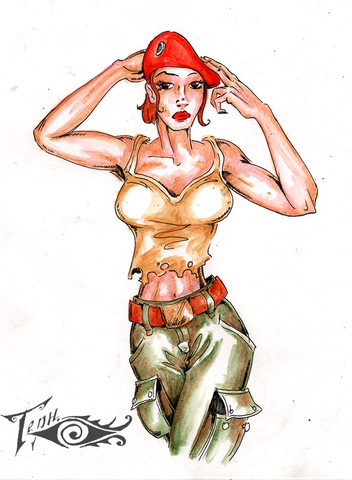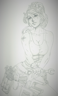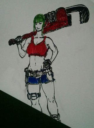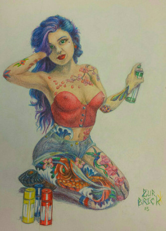 In the depths of the world, a woman was raised by her single father. He teached her about his work... Eventually the workshop became the town's most visited. The men decide to not give their cairs maintenance on purpose... they crash their cars... they stop checkin levels... so the cars keeps visiting this business.I tried to do some pin up style draw. Used Prismacolor Pencils