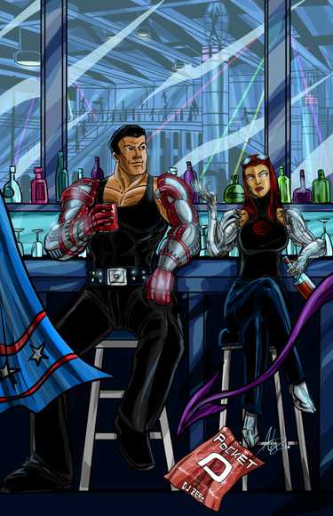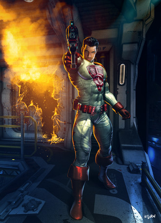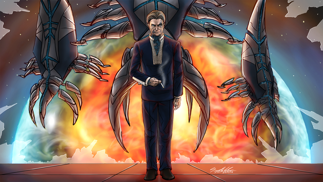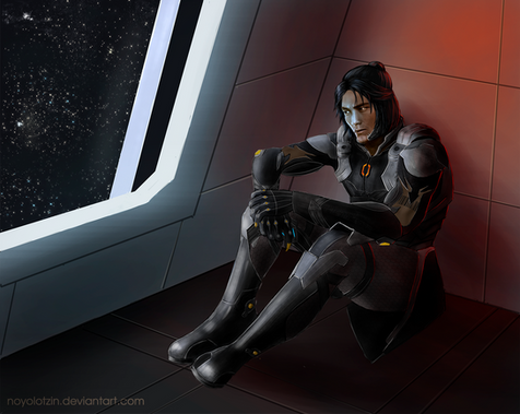 In a screwed up situation, Alec Strader was taken and imprisoned by his own people. Realizing something was seriously wrong with this, Jivatma followed Alec without his awareness, perched outside the prison ship he was being held aboard, and watching him every step of the way until he could be free. Eventually it was discovered that his superiors were compromised via mind control, and Jivatma was able to break him out.This piece is amazing to me, and captures the fate of each character superbly. The whole scenery of the ship passing by an iceberg with a visible aurora borealis is just majestic.