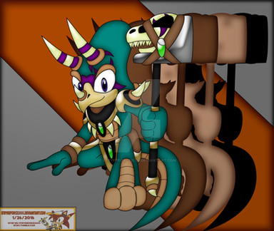You're welcome Stryke. He's a pretty cool character you made. You're really good at designing dinosaur Mobians. Very creative. I like the voice actor you chose for him too. Kevin Michael Richardson is a pretty awesome voice actor. ^^