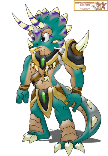 OK! I finally colored it. I had to work all weekend so I didn't get to do as much as I wanted. I am very pleased with how this came out. I really need to do more with this big guy. I'm actually hoping I can find some artists who I can commission to draw him for me sometime. I feel he may be too difficult for some.Anyway, enough chatter. Tecton is the largest and oldest member of Team Strykeforce. He is the crown prince of a tribe of dinosaurs known as the Cretaceans and the bearer of the Elemental of Earth.
