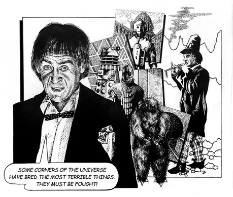 There was something in the voice, an almost spiteful desperation that put strength into the Doctor's dying, pain-wracked body as he pulled himself up on the door handle and dragged at his ebbing companion's body till she was over the threshold. He met the disembodied face's gaze and conjured-up a grim smile from somewhere;