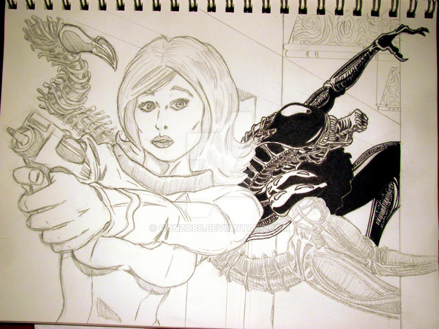 #avp #ink #predator #ripley #sketch #warrior