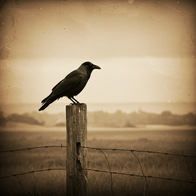 Unedited, my this is something! I'll tell ya, I saw this thumb and freaked out. I quickly identified the crow but I also thought that what it was perched on was the silhouette of a person! (you see the shoulders and arm straight down on each side.) Of course, that would be this is a massive bird!!