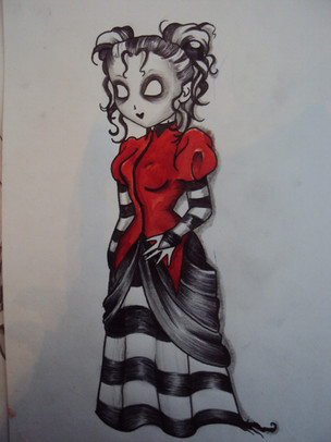 Very Burton-ish, I like how the colors are adapted to the drawing, very nice =]