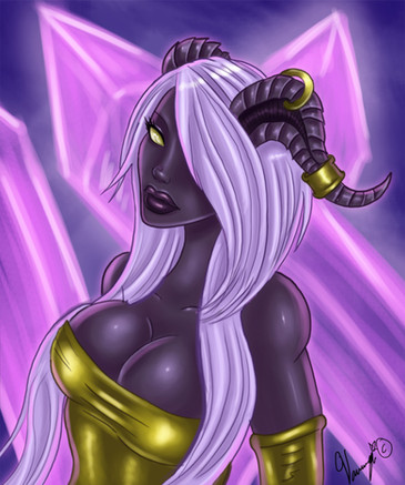A draenei from the World of Warcraft. Probably a mage or somethin' like that.Background texture found here .
