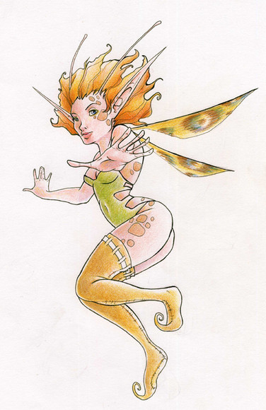 Prismacolor and ink on smooth bristol, about 8x10
